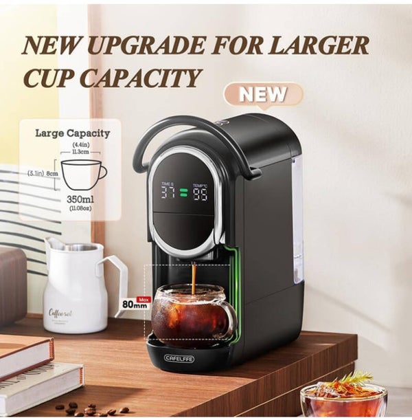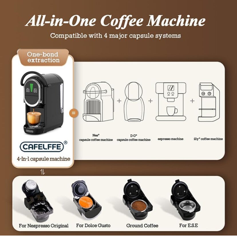 Machine à café à capsules 4 en 1avec pression de de 19 bars, infusion chaude et froide, expresso compact pour la maiosn et le bureau, Nes, DG,ESE, moulu, noir